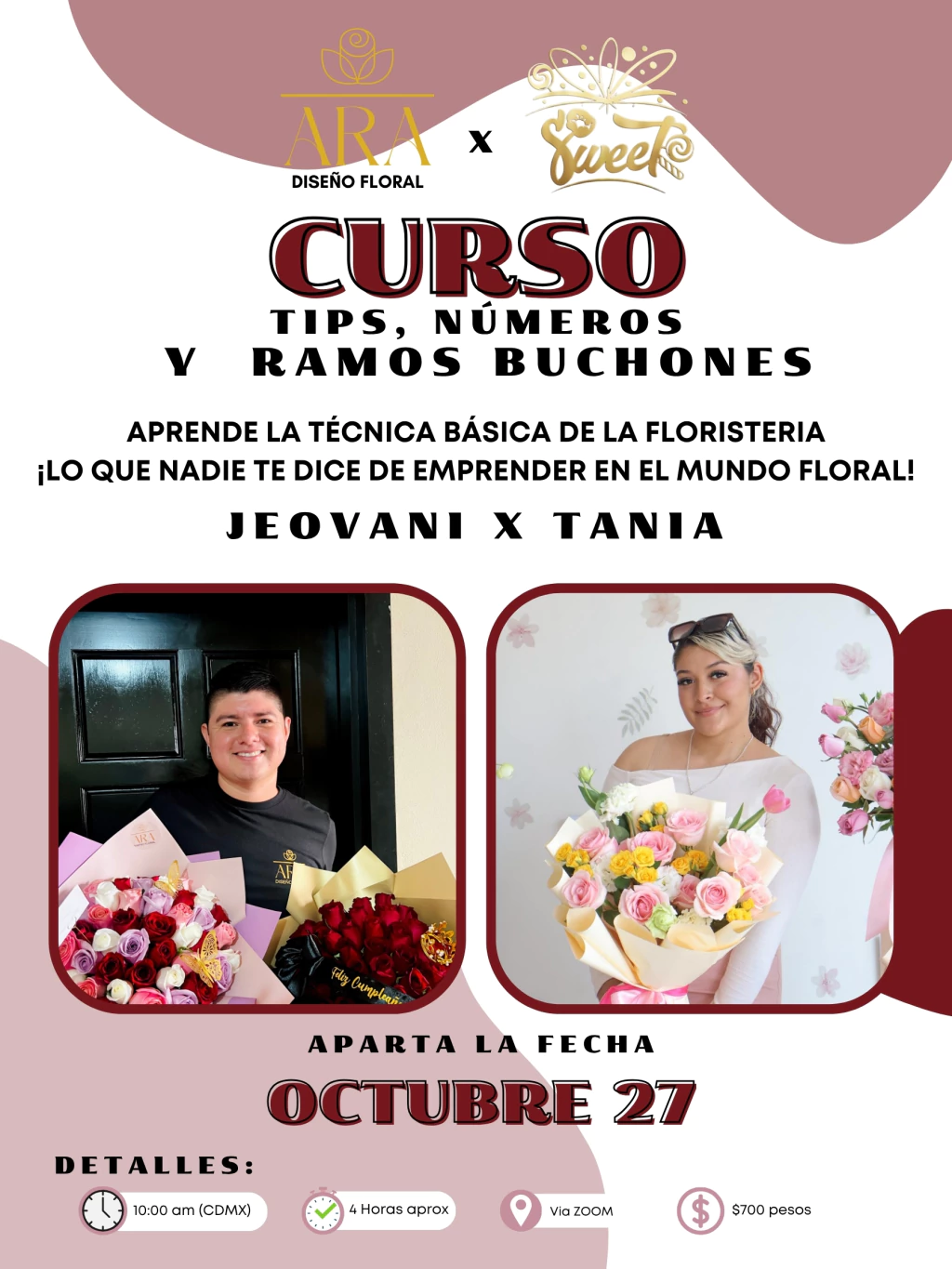 Este 27 de octubre, acompáñanos en el curso “Tips, Números y Ramos Buchones” con Jeovani x Tania 💐